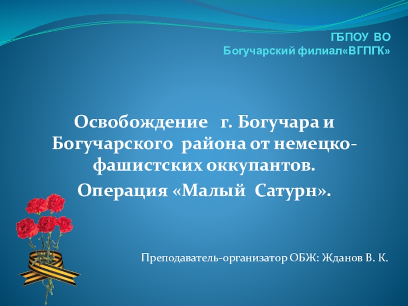 Преподаватель-организатор ОБЖ: Жданов В. К.