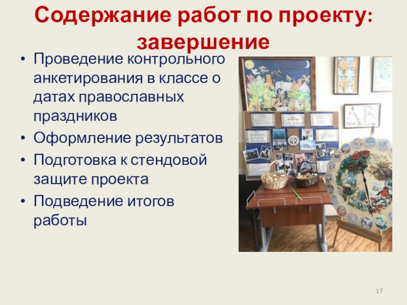Слайд 17Проведение контрольного анкетирования в классе о датах православных праздников