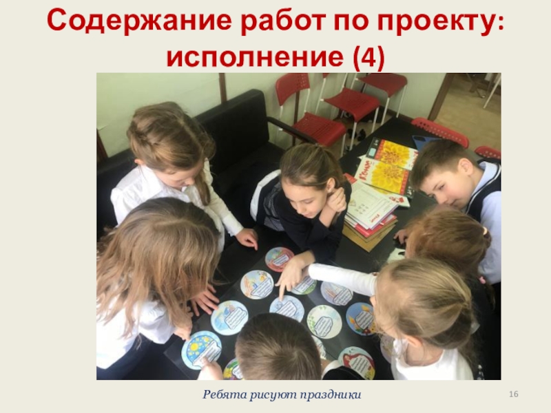 Слайд 16Содержание работ по проекту: исполнение (4)