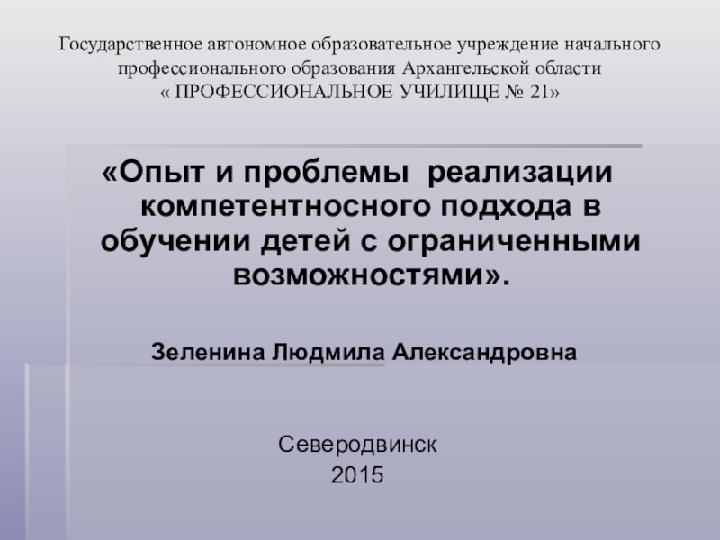 «Опыт и проблемы реализации компетентносного подхода в обучении детей с ограниченными возможностями».
