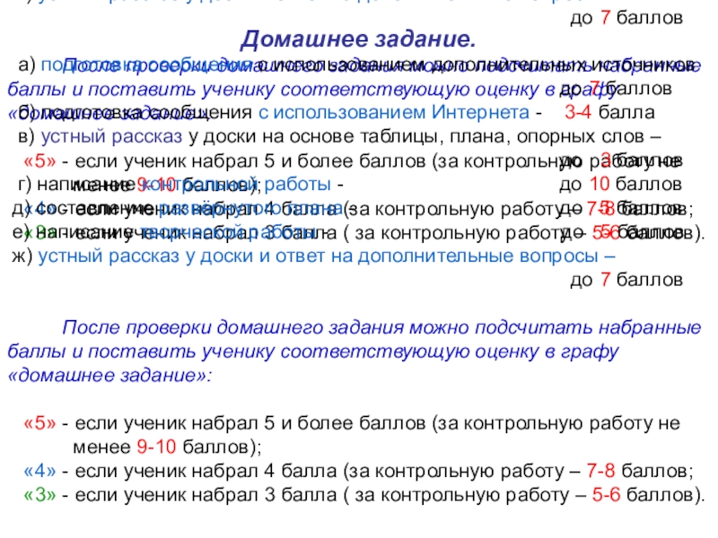 После проверки домашнего задания можно подсчитать набранные баллы и поставить ученику соответствующую оценку в графу «домашнее задание»:
