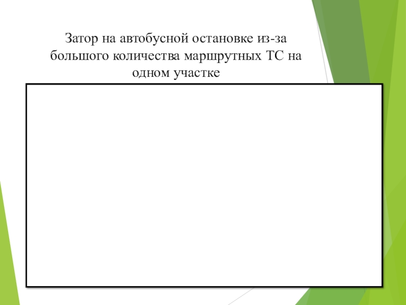 Слайд 17Затор на автобусной остановке из-за большого количества маршрутных ТС на одном