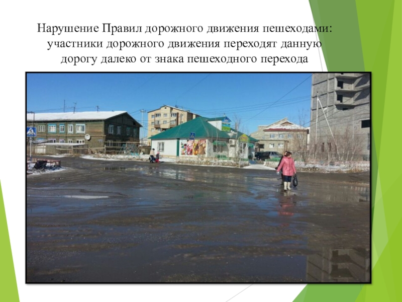 Слайд 9Нарушение Правил дорожного движения пешеходами: участники дорожного движения переходят данную дорогу