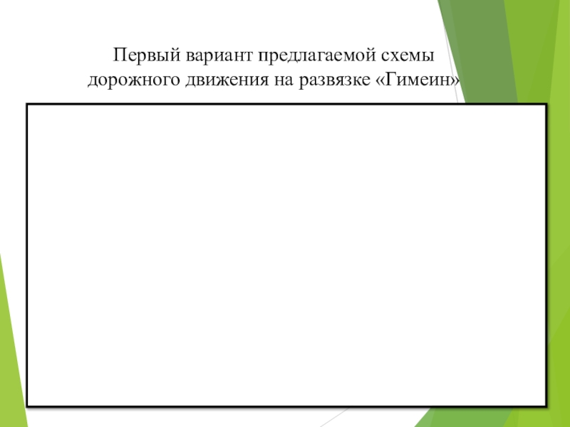 Слайд 18Первый вариант предлагаемой схемы дорожного движения на развязке «Гимеин»