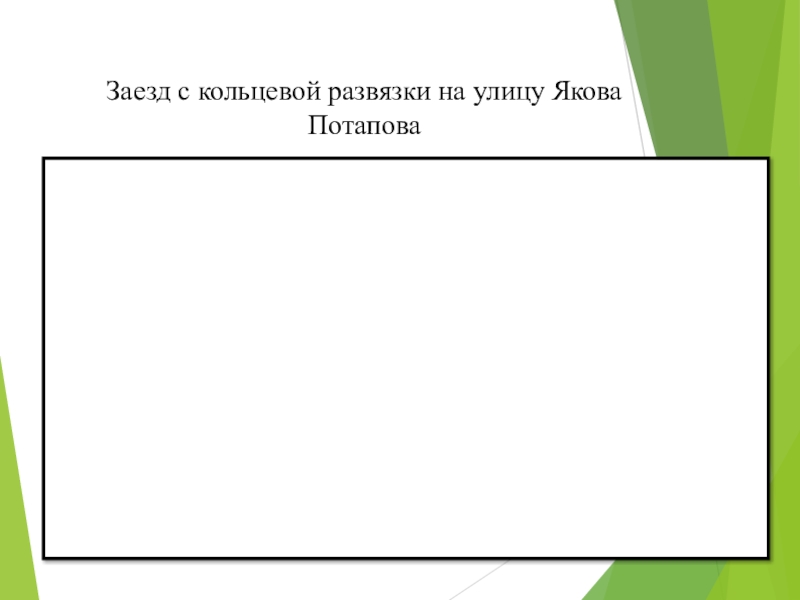 Слайд 14Заезд с кольцевой развязки на улицу Якова Потапова