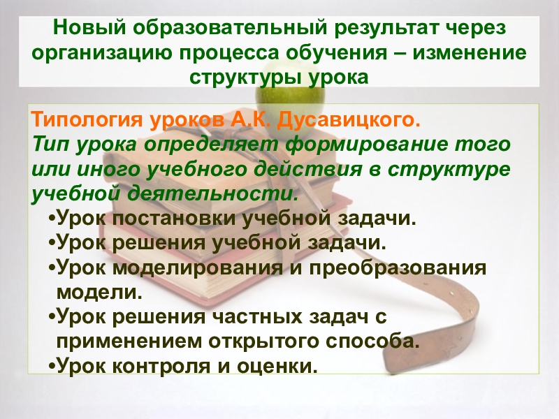 Тип урока определяет формирование того или иного учебного действия в структуре учебной деятельности.