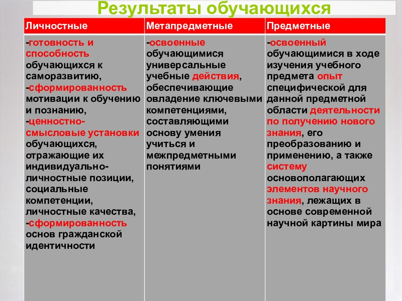 -освоенный обучающимися в ходе изучения учебного предмета опыт специфической для данной предметной области деятельности по получению нового знания, его преобразованию и применению, а также систему основополагающих элементов научного знания, лежащих в основе современной научной картины мира