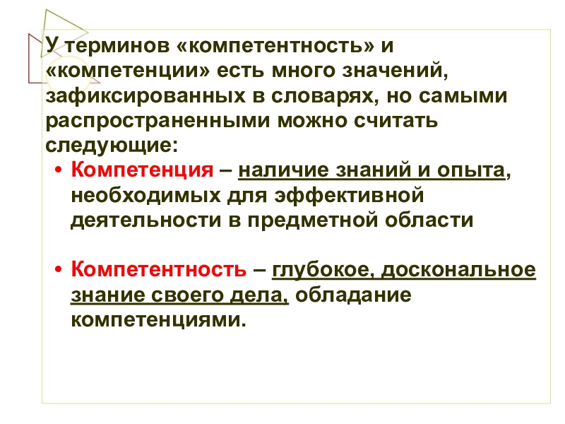 Слайд 20У терминов «компетентность» и «компетенции» есть много значений, зафиксированных в словарях,