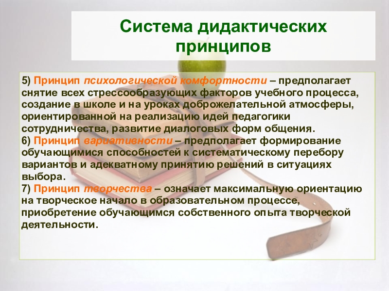 5) Принцип психологической комфортности – предполагает снятие всех стрессообразующих