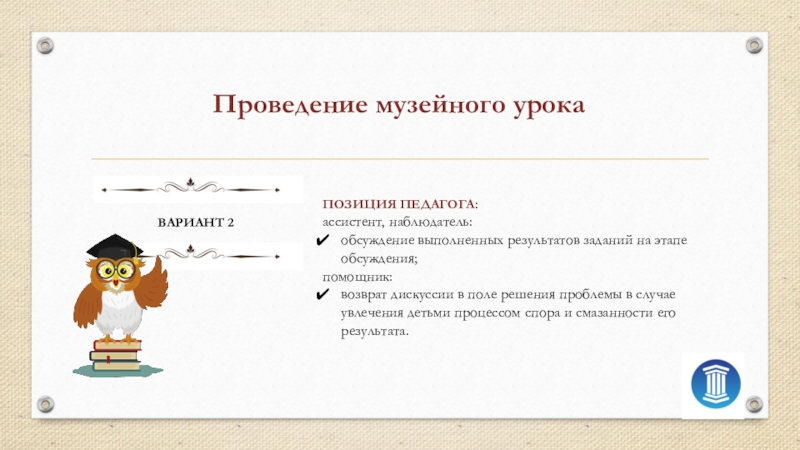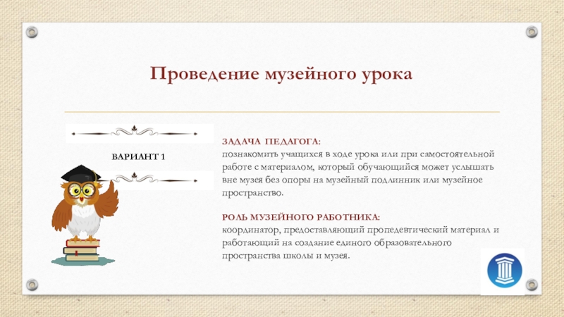 Слайд 50 Урок в музее – это не разовое музейное мероприятие, которое