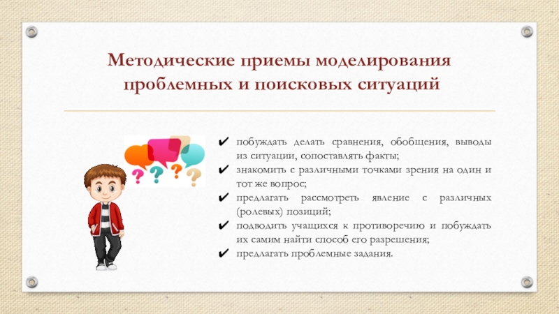 Слайд 41Моделирование проблемных и поисковых ситуаций