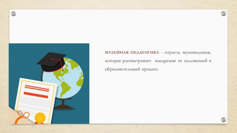 Слайд 2МУЗЕЙНАЯ ПЕДАГОГИКА – отрасль музееведения, которая рассматривает внедрение ее положений в