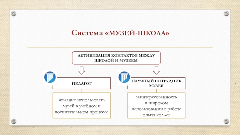Слайд 6АКТИВИЗАЦИЯ КОНТАКТОВ МЕЖДУ ШКОЛОЙ И МУЗЕЕМ: