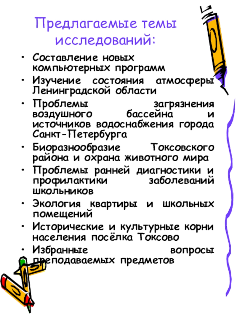 Слайд 5Предлагаемые темы исследований: