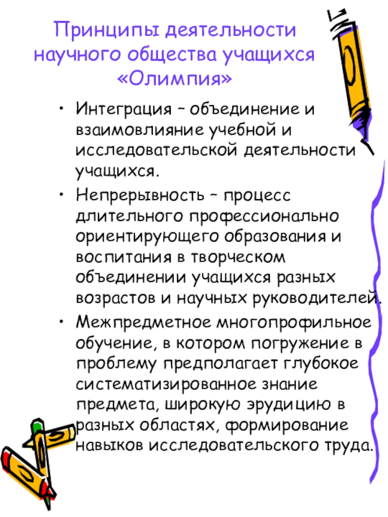 Слайд 9Принципы деятельности научного общества учащихся «Олимпия»