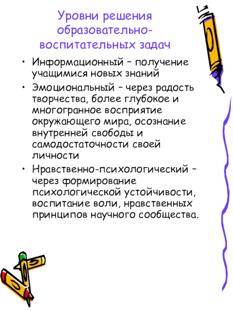 Слайд 10Уровни решения образовательно-воспитательных задач