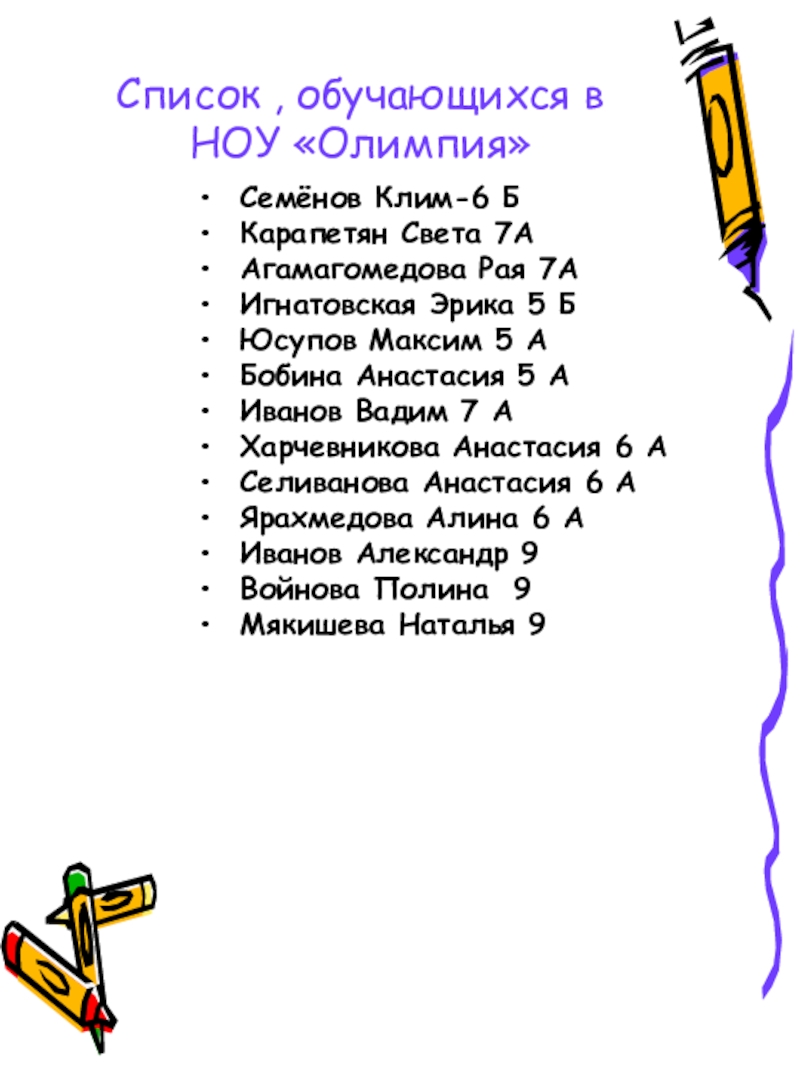 Слайд 14Список , обучающихся в НОУ «Олимпия»