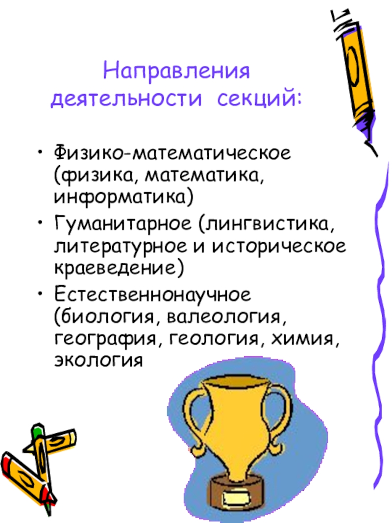 Слайд 4Направления деятельности секций: