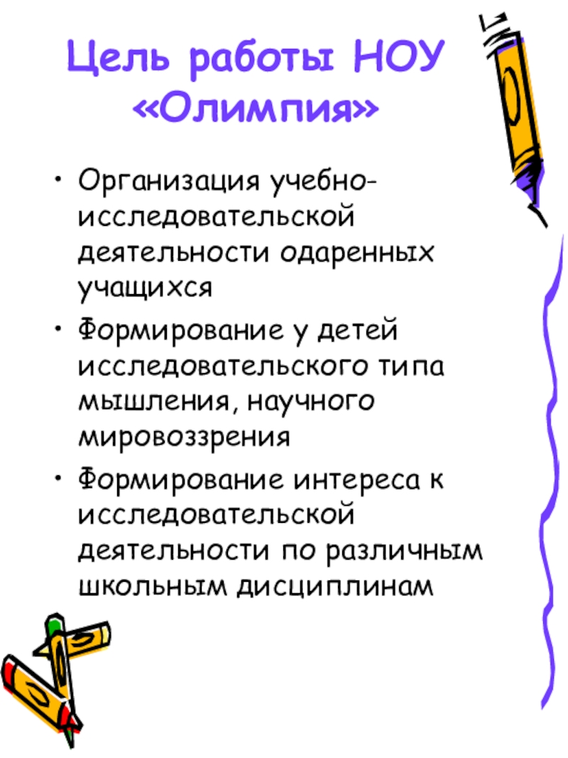 Слайд 3Цель работы НОУ «Олимпия»