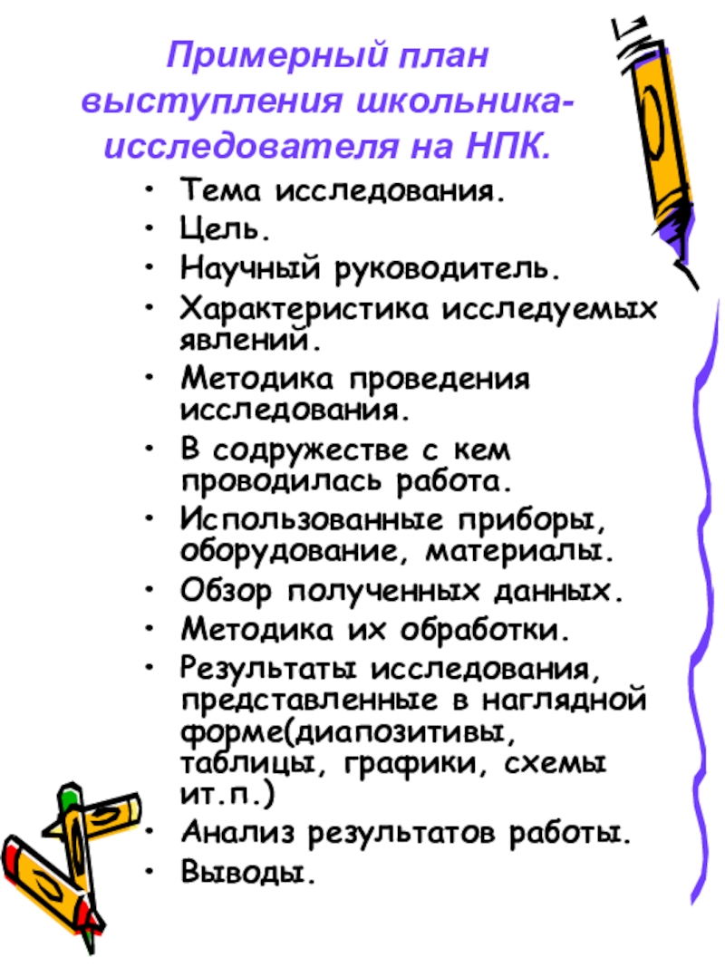 Примерный план выступления школьника-исследователя на НПК.