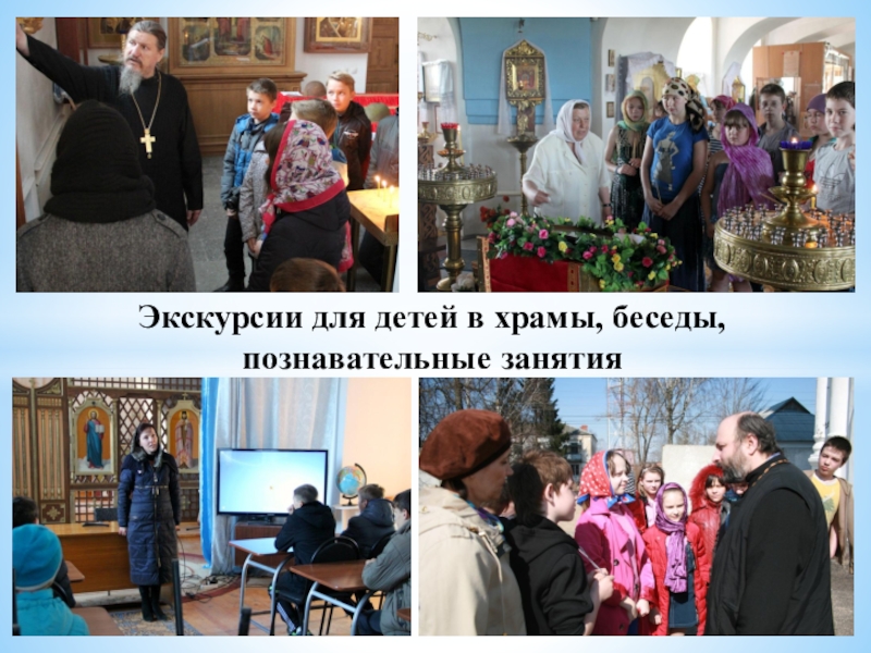 Слайд 7Экскурсии для детей в храмы, беседы,