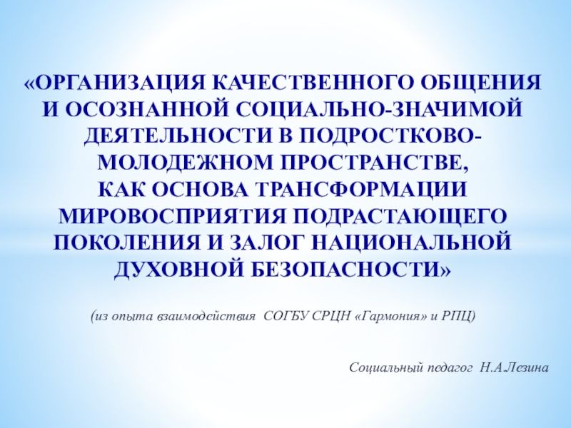 Слайд 1«ОРГАНИЗАЦИЯ КАЧЕСТВЕННОГО ОБЩЕНИЯ