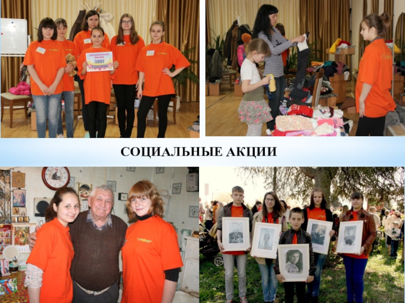 социальные акции («Благотворительный магазин 1001 спасибо», «Внучата пишут» и «Внучата дарят», «Время чудес», «Скажем наркотикам НЕТ» и др.),