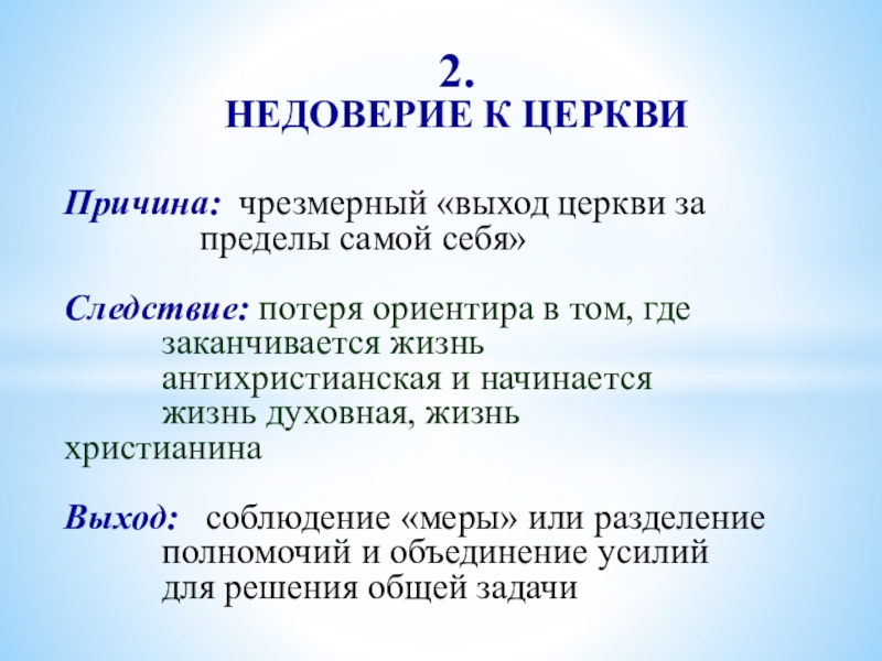 Причина: чрезмерный «выход церкви за