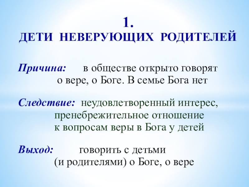 ДЕТИ НЕВЕРУЮЩИХ РОДИТЕЛЕЙ
