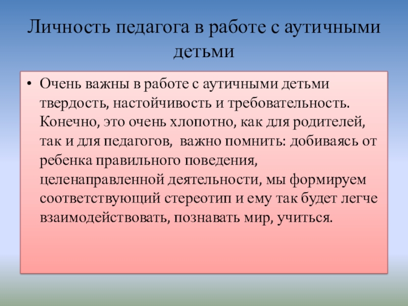Слайд 14Личность педагога в работе с аутичными детьми