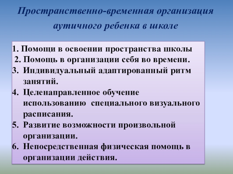 Пространственно-временная организация аутичного ребенка в школе