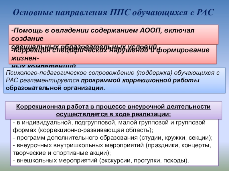 Слайд 3Основные направления ППС обучающихся с РАС