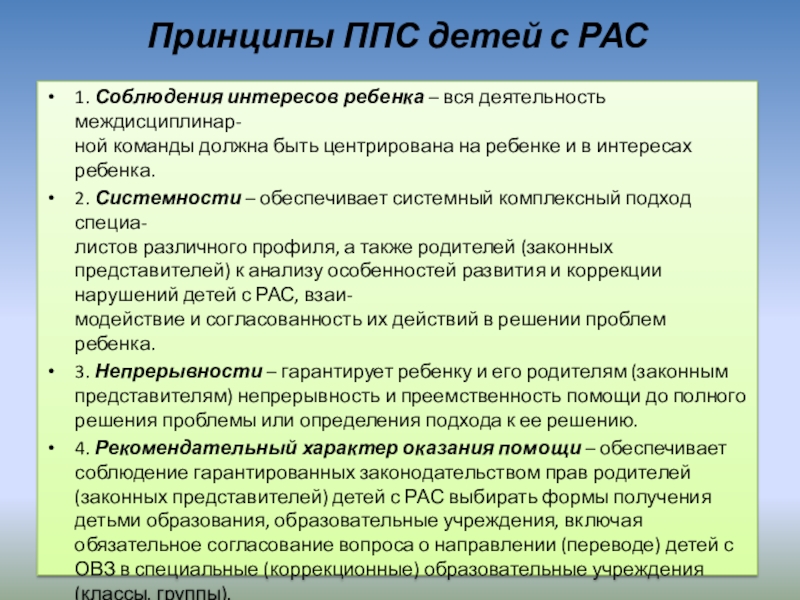 Слайд 7Принципы ППС детей с РАС