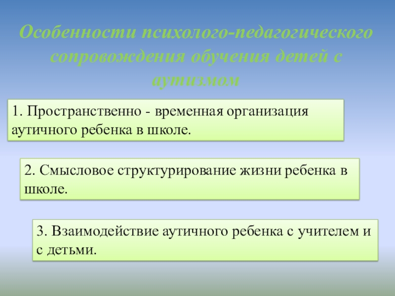 Слайд 8Особенности психолого-педагогического сопровождения обучения детей с аутизмом