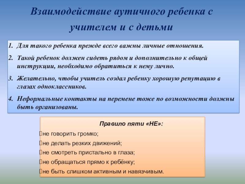 3. Взаимодействие аутичного ребенка с учителем и с детьми.