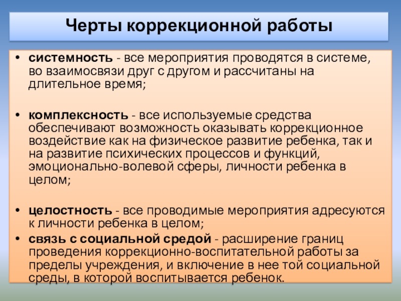 Черты коррекционной работы