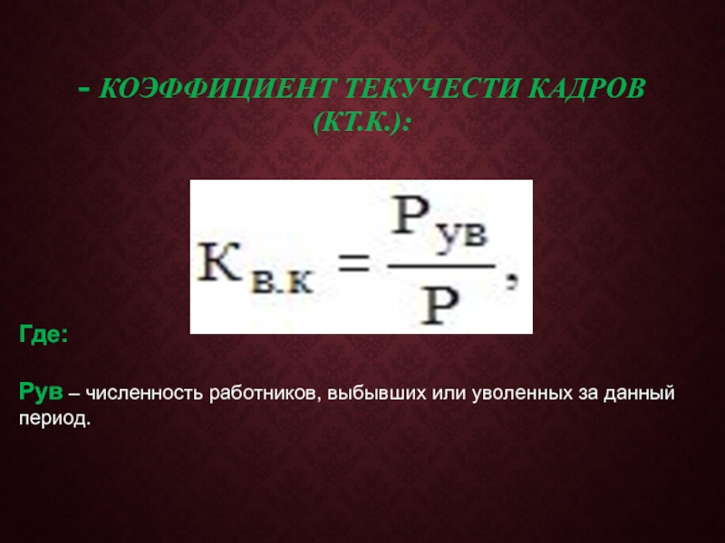 - КОЭФФИЦИЕНТ ТЕКУЧЕСТИ КАДРОВ (КТ.К.):