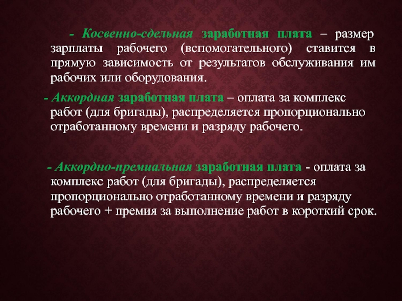 Слайд 40 - Косвенно-сдельная заработная плата – размер зарплаты рабочего