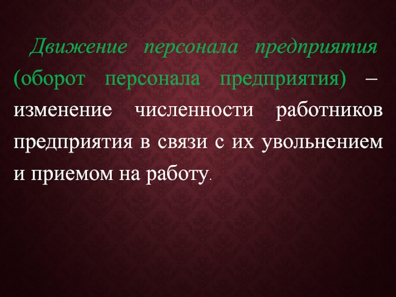Слайд 12 Движение персонала предприятия (оборот персонала предприятия) – изменение численности работников