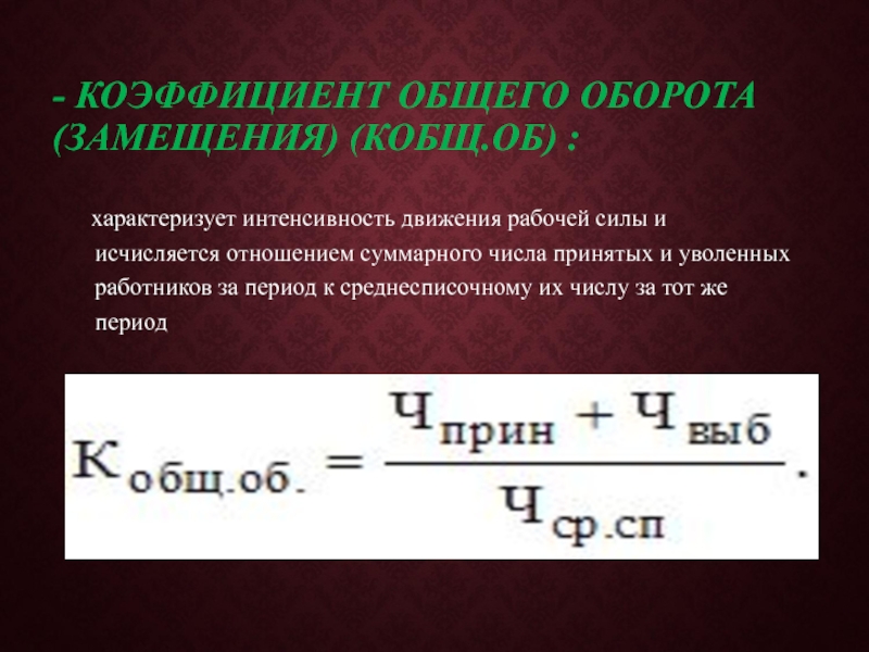 Слайд 16- КОЭФФИЦИЕНТ ОБЩЕГО ОБОРОТА(ЗАМЕЩЕНИЯ) (КОБЩ.ОБ) :