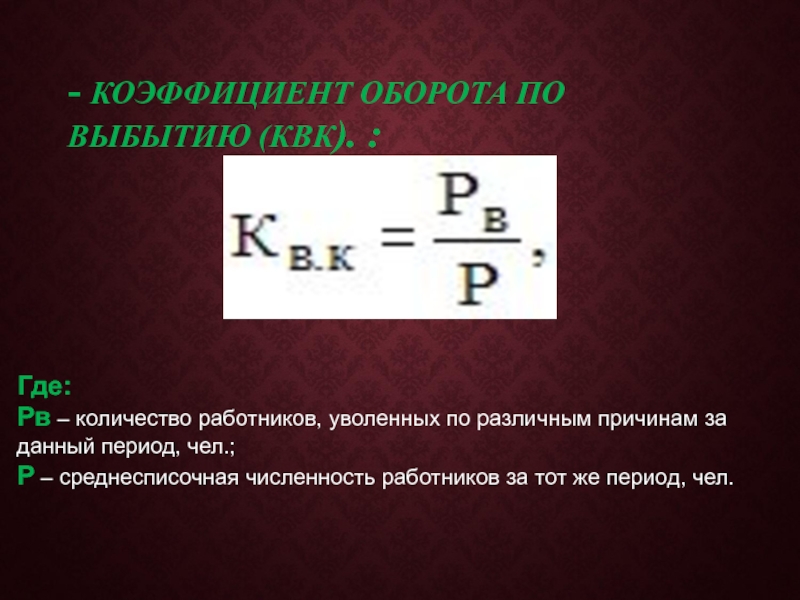 - КОЭФФИЦИЕНТ ОБОРОТА ПО ВЫБЫТИЮ (КВК). :