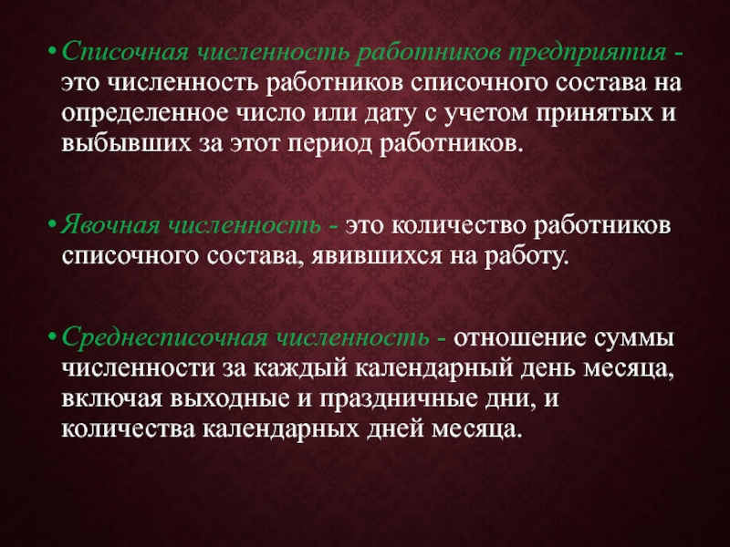 Слайд 10Списочная численность работников предприятия - это численность работников списочного состава на