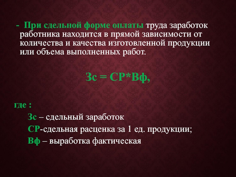 Зспр – сдельный заработок;