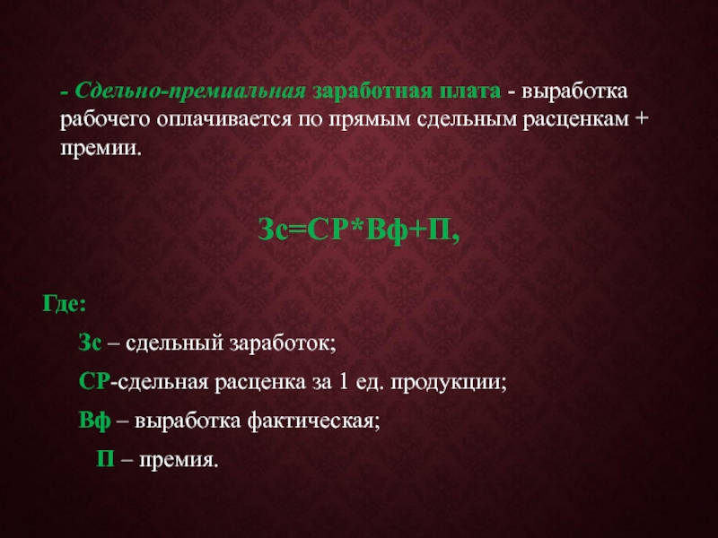 Слайд 38 - Сдельно-премиальная заработная плата - выработка рабочего оплачивается по