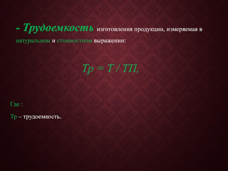 Слайд 18Производительность труда – показатель, отражающий эффективность использования трудовых ресурсов предприятия. Определяется
