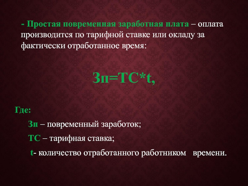 Слайд 42 - Простая повременная заработная плата – оплата производится по