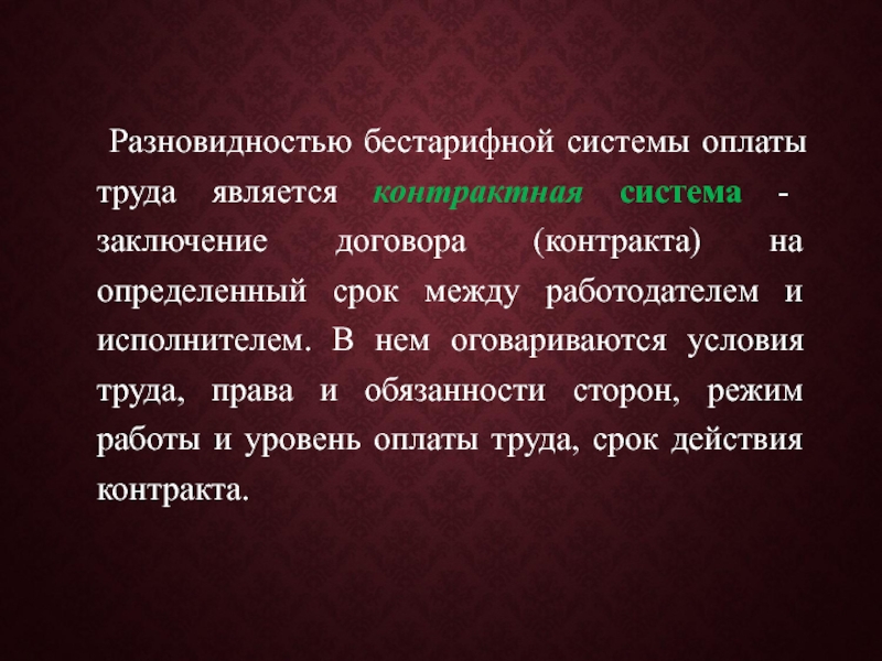 Слайд 46 Разновидностью бестарифной системы оплаты труда является контрактная система -