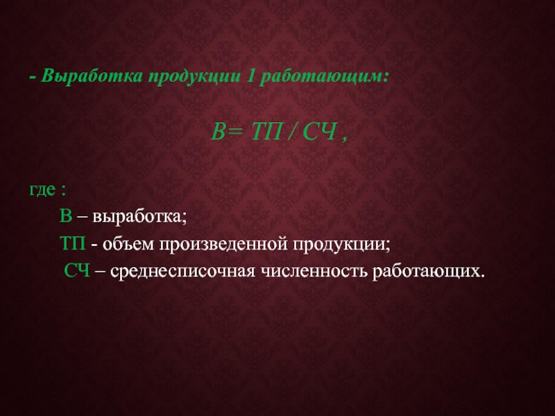 - Выработка продукции в единицу времени: