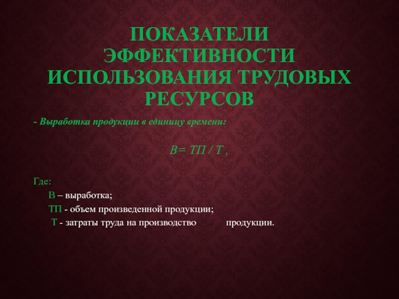 ПОКАЗАТЕЛИ ЭФФЕКТИВНОСТИ ИСПОЛЬЗОВАНИЯ ТРУДОВЫХ РЕСУРСОВ