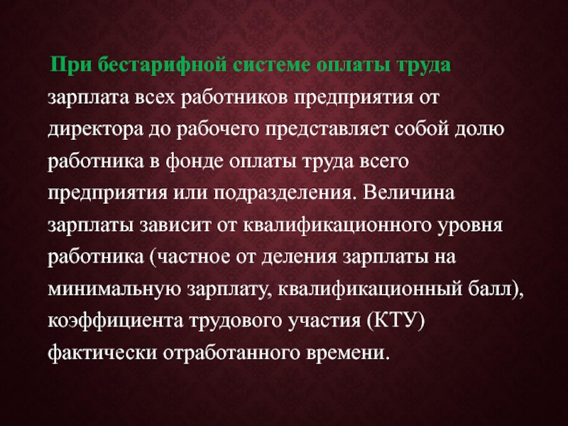 Слайд 45 При бестарифной системе оплаты труда зарплата всех работников предприятия
